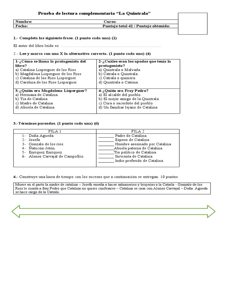 Prueba de lectura complementaria “La Quintrala”
