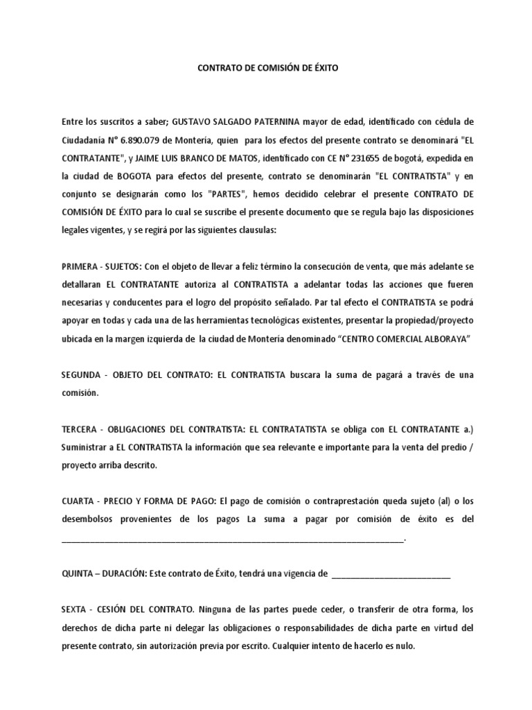 CONTRATO DE COMISIÓN DE ÉXITO