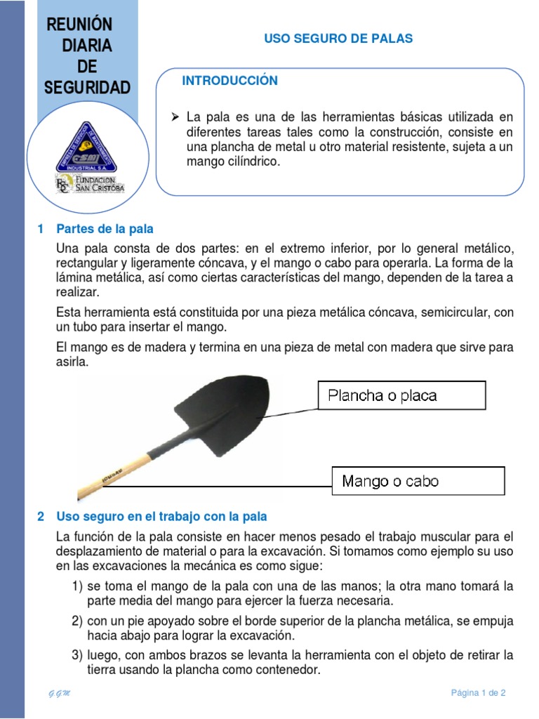 1) se toma el mango de la pala con una de las manos; la otra mano tomará la