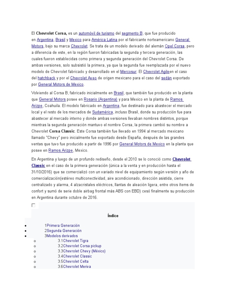 económicos. Así fue que la primera generación del Corsa, pasó a denominarse Chevrolet