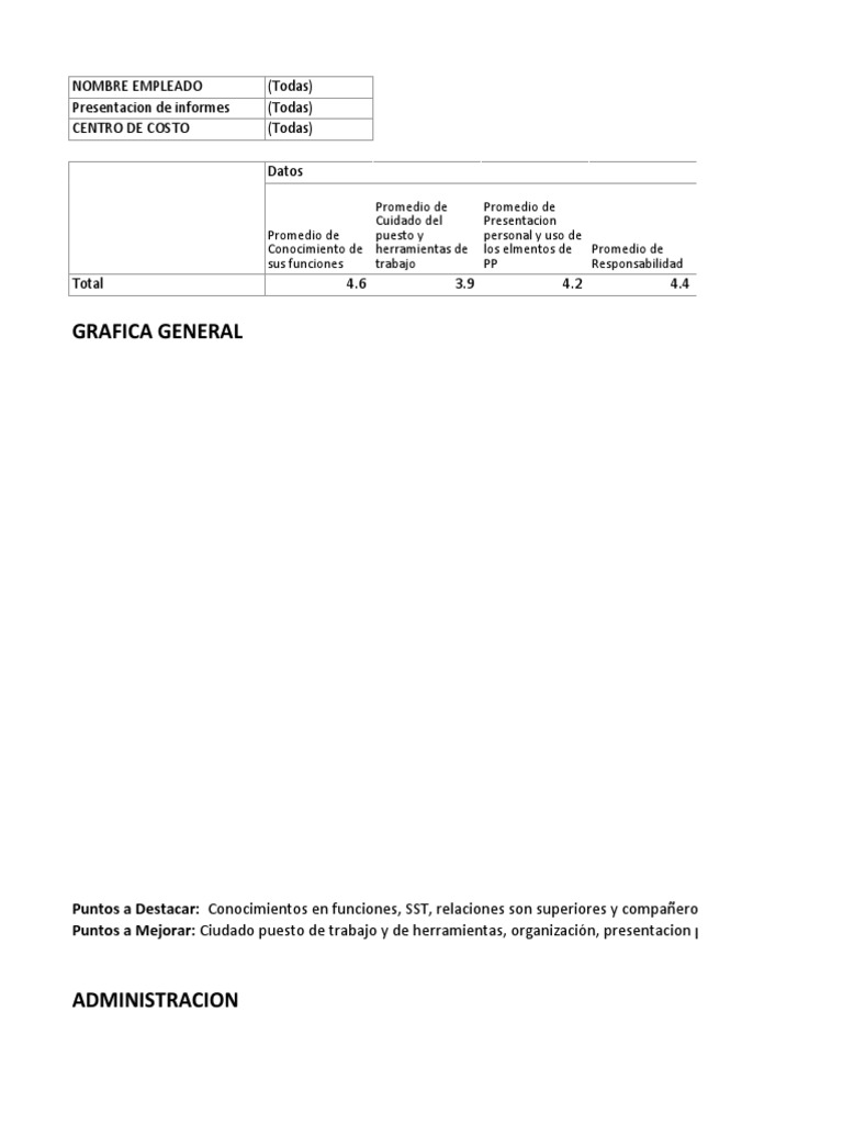 Puntos a Mejorar: Cuidado puesto de trabajo, organización, puntualidad y asistencia.