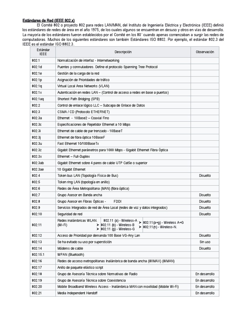 computadoras. Muchos de los siguientes estándares son también Estándares ISO 8802. Por ejemplo, el estándar 802.3 del