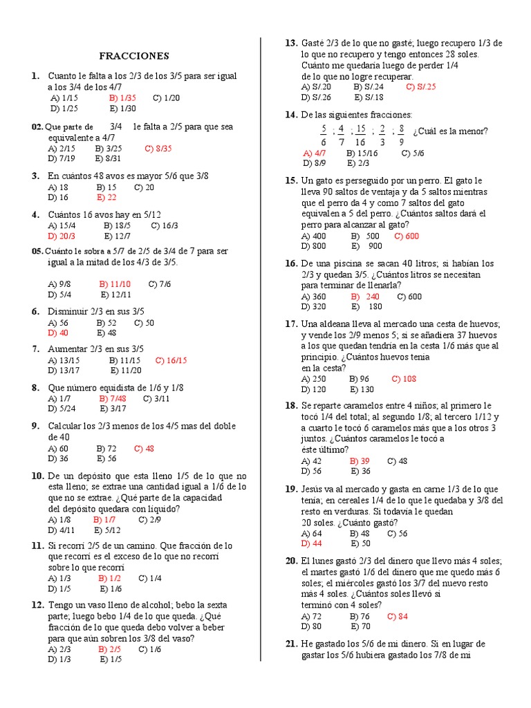 58. Si el 14% del área de un círculo es igual al 70% 67. Se tiene dos recipientes conteniendo 10 litros de