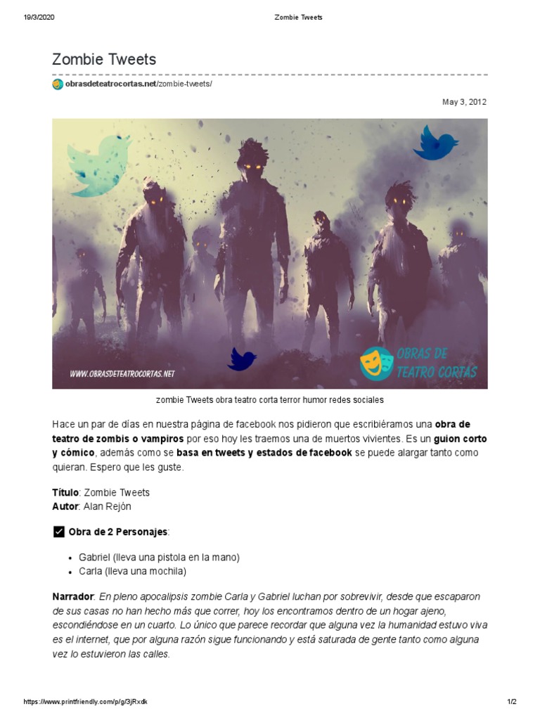 teatro de zombis o vampiros por eso hoy les traemos una de muertos vivientes. Es un guion corto