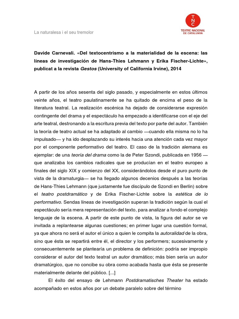 Davide Carnevali. «Del textocentrismo a la materialidad de la escena: las