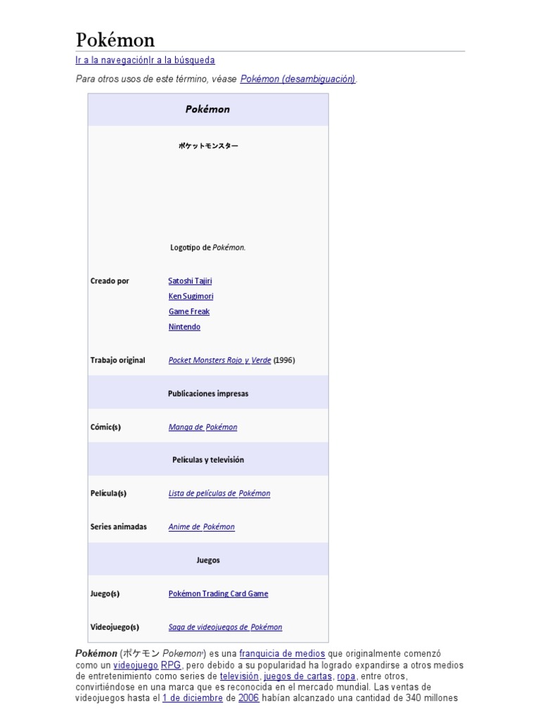 Pokémon (ポケモン Pokemon ) es una franquicia de medios que originalmente comenzó