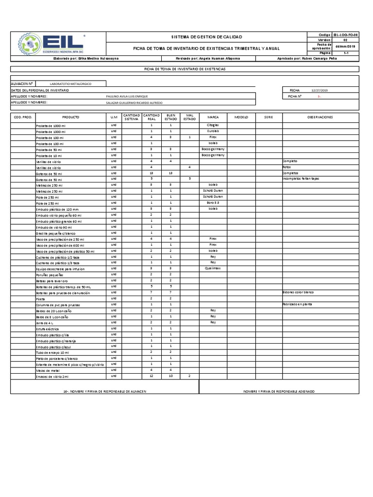 FICHA DE TOMA DE INVENTARIO DE EXISTENCIAS