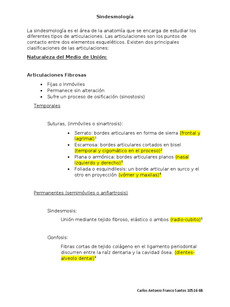 La sindesmología es el área de la anatomía que se encarga de estudiar los
