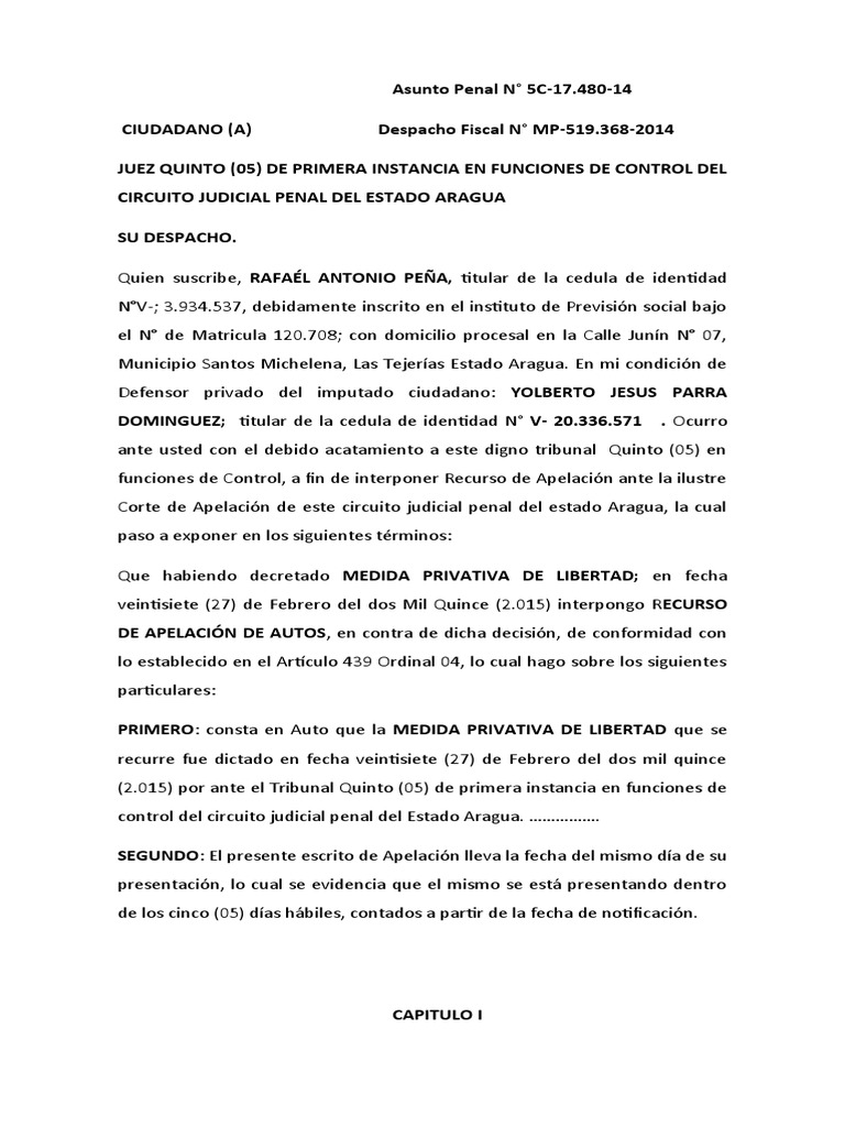 Solicito con el mayor respeto a esta honorable Corte de Apelaciones, que el
