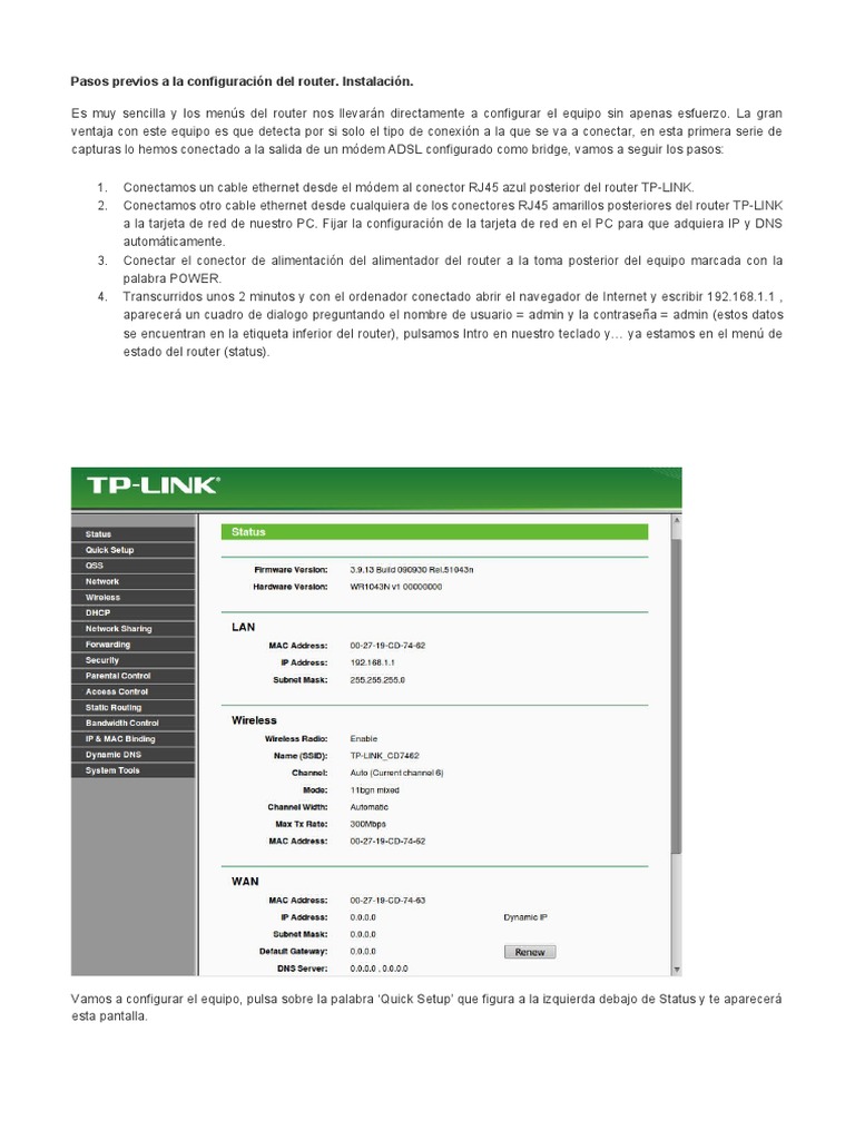 Vamos a configurar el equipo, pulsa sobre la palabra ‘Quick Setup’ que figura a la izquierda debajo de Status y te aparecerá