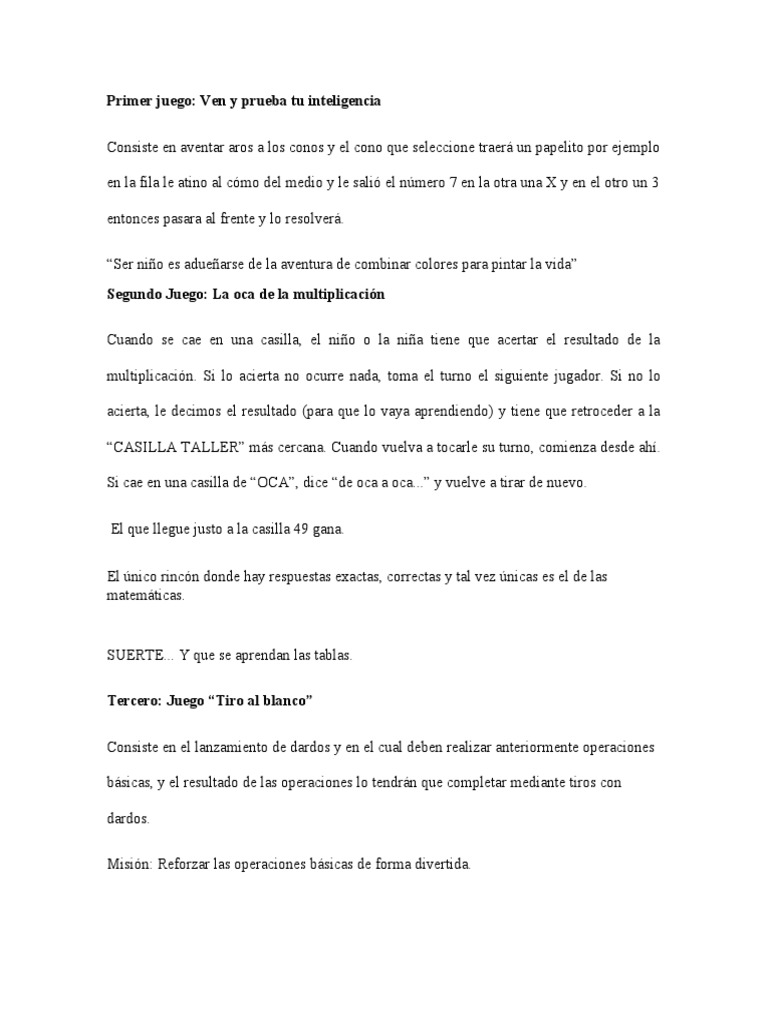 Consiste en el lanzamiento de dardos y en el cual deben realizar anteriormente operaciones