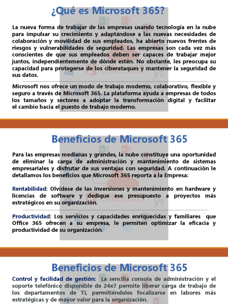 detallamos los beneficios que Microsoft 365 reporta a la Empresa: