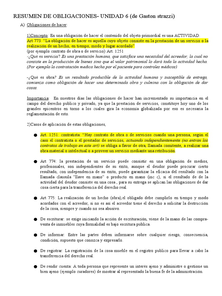 Art 773: “La obligación de hacer es aquella cuyo objeto consiste en la prestación de un servicio o la