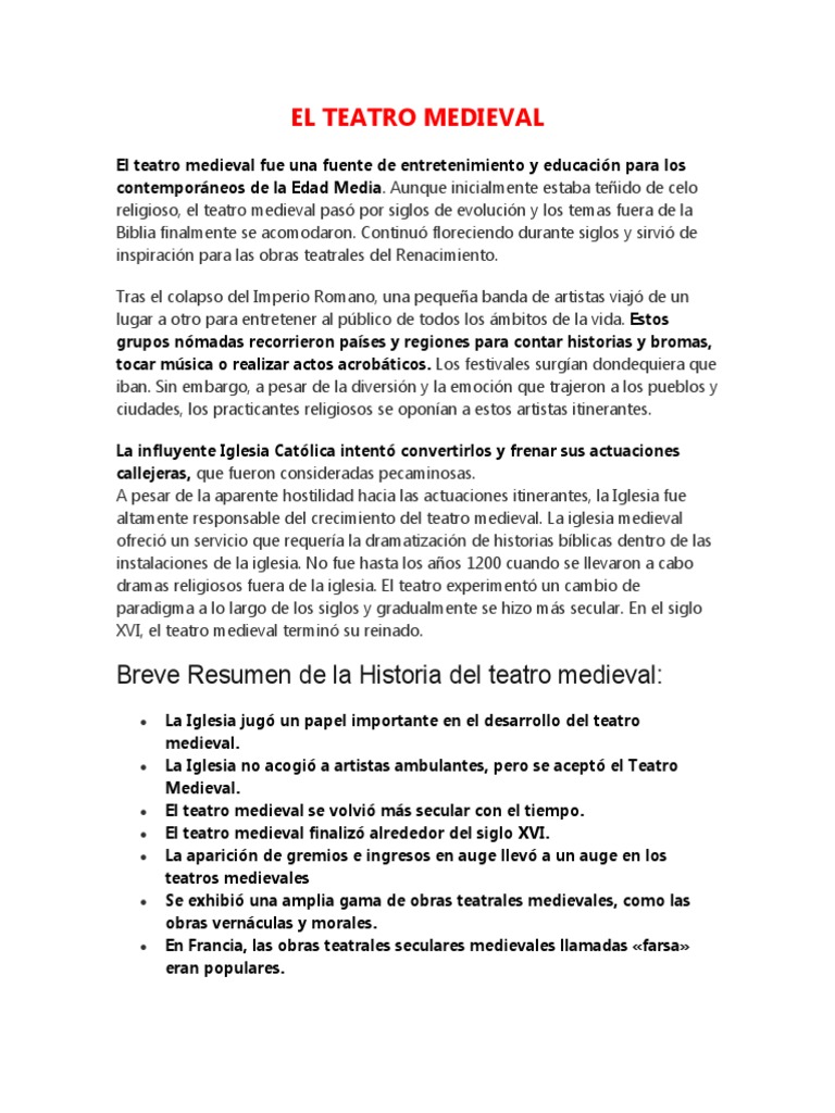 Breve Resumen de la Historia del teatro medieval:
