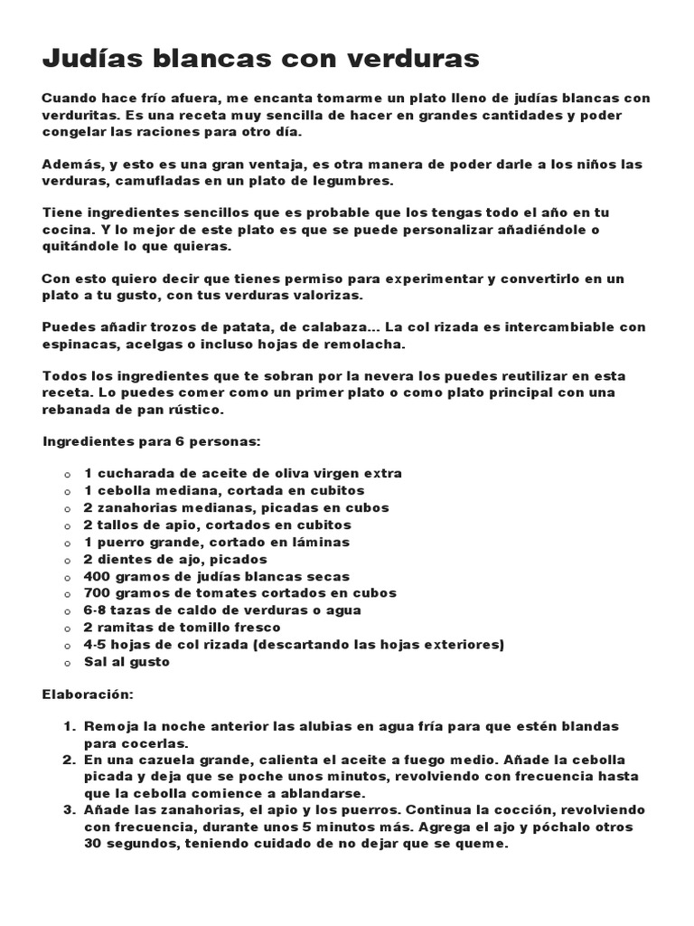 Judías blancas con verduras