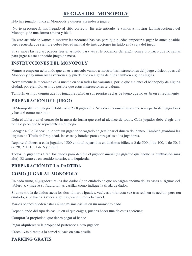 enseñarte de forma rápida las reglas del Monopoly sin entrar en demasiada profundidad.