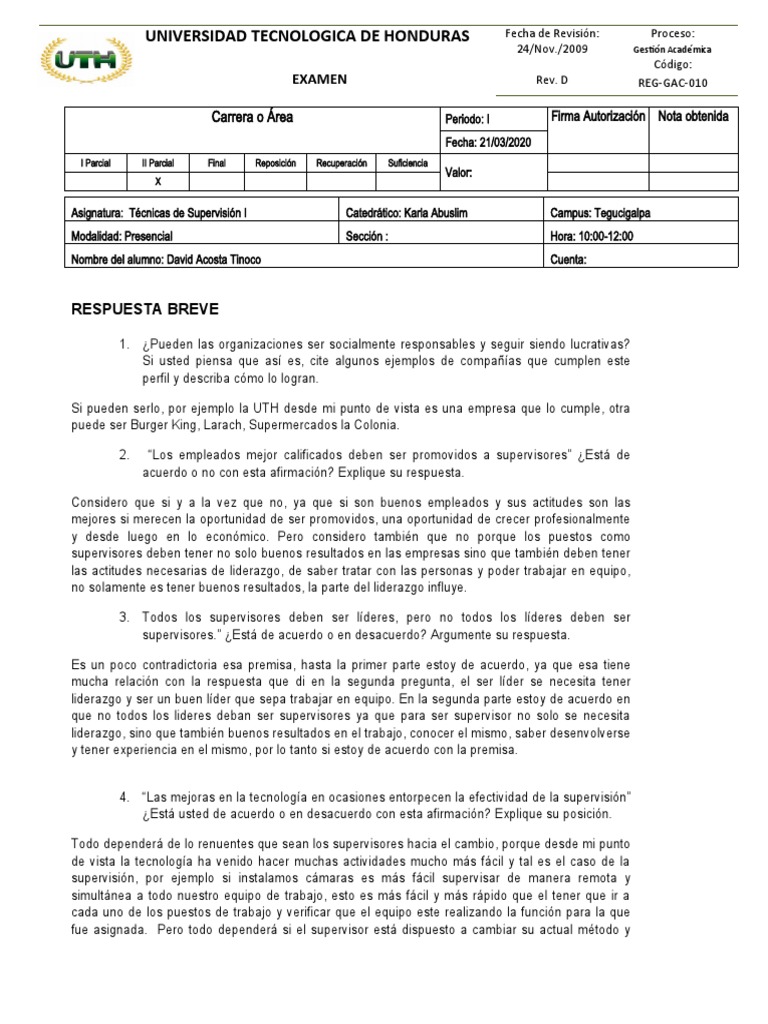 Asignatura: Técnicas de Supervisión I Catedrático: Karla Abuslim Campus: Tegucigalpa
