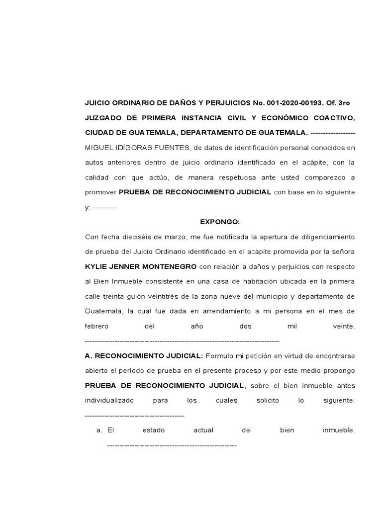 promover PRUEBA DE RECONOCIMIENTO JUDICIAL con base en lo siguiente