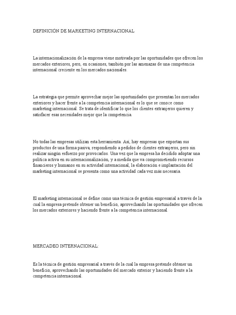 del marketing no hay una definición sola por el marketing internacional. Además algunos
