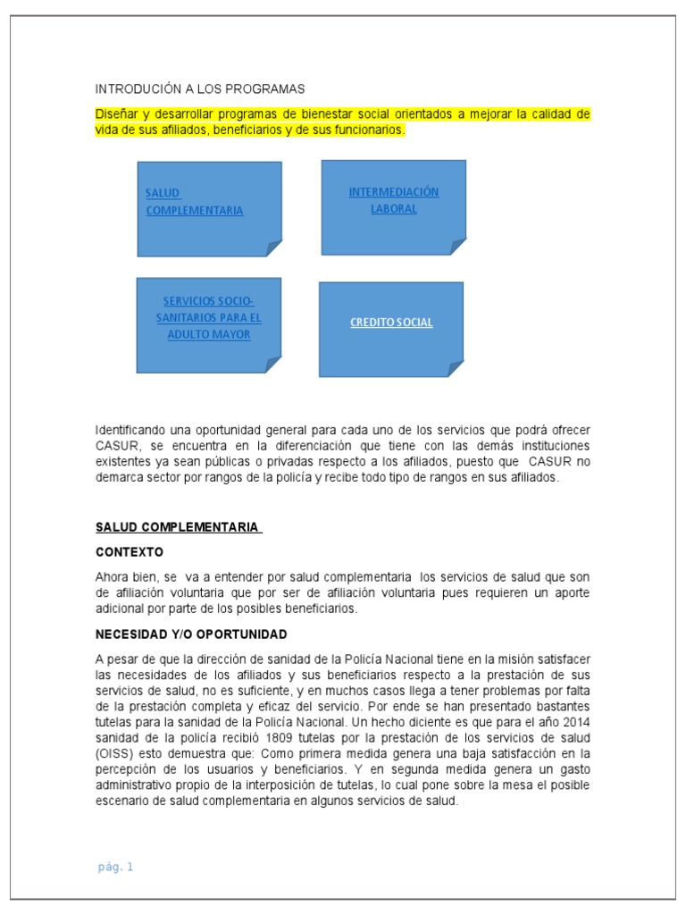 Aterrizando el plan complementario de salud al desarrollo que se daría en CASUR, se