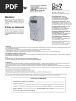 Nota: El consumidor podrá solicitar que se haga efectiva la garantía ante la propia casa comercial, donde adquirió el producto. Si la presente garantía se extraviara, el