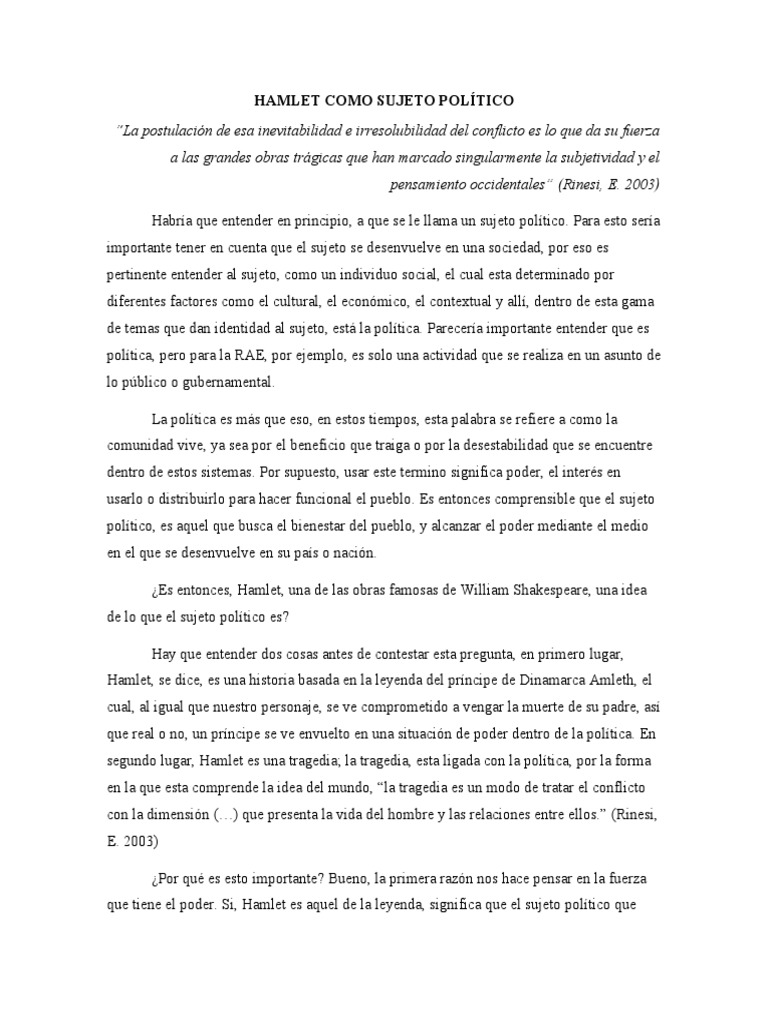 que tiene el poder. Si, Hamlet es aquel de la leyenda, significa que el sujeto político que