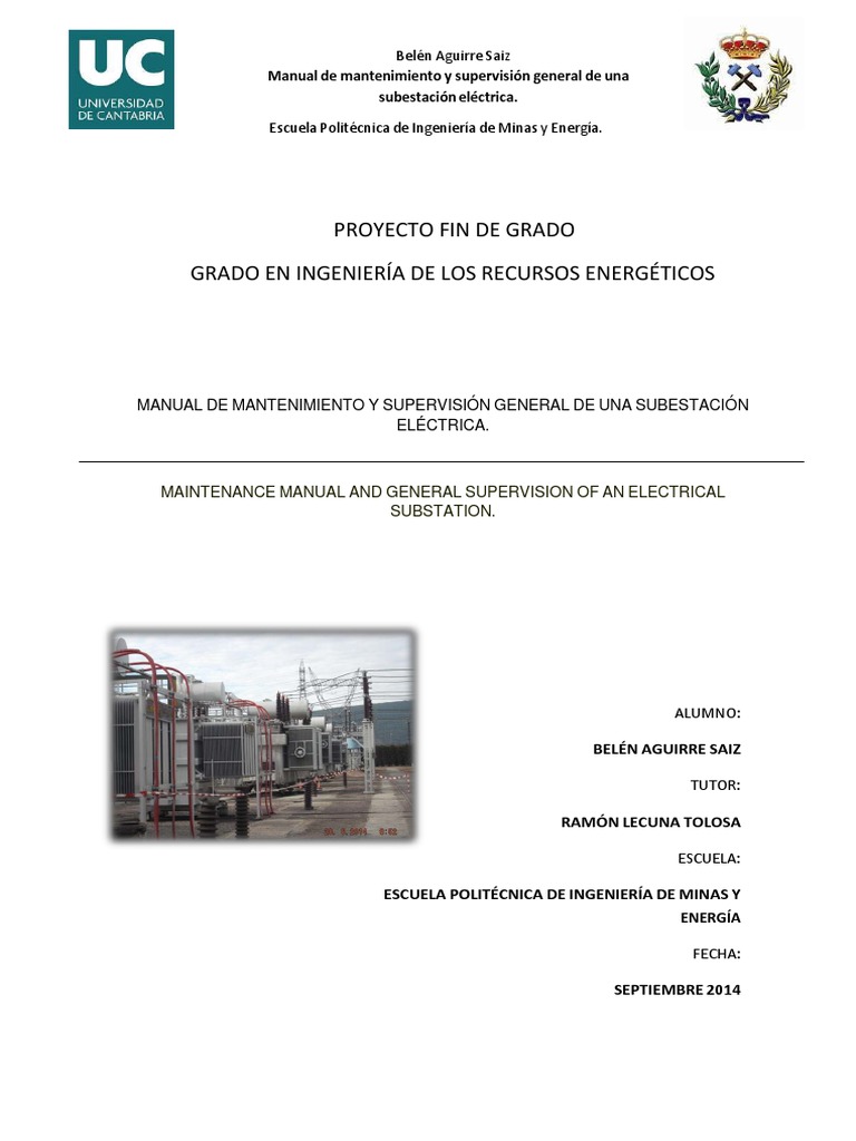La subestación objeto del manual se define como una subestación o estación principal