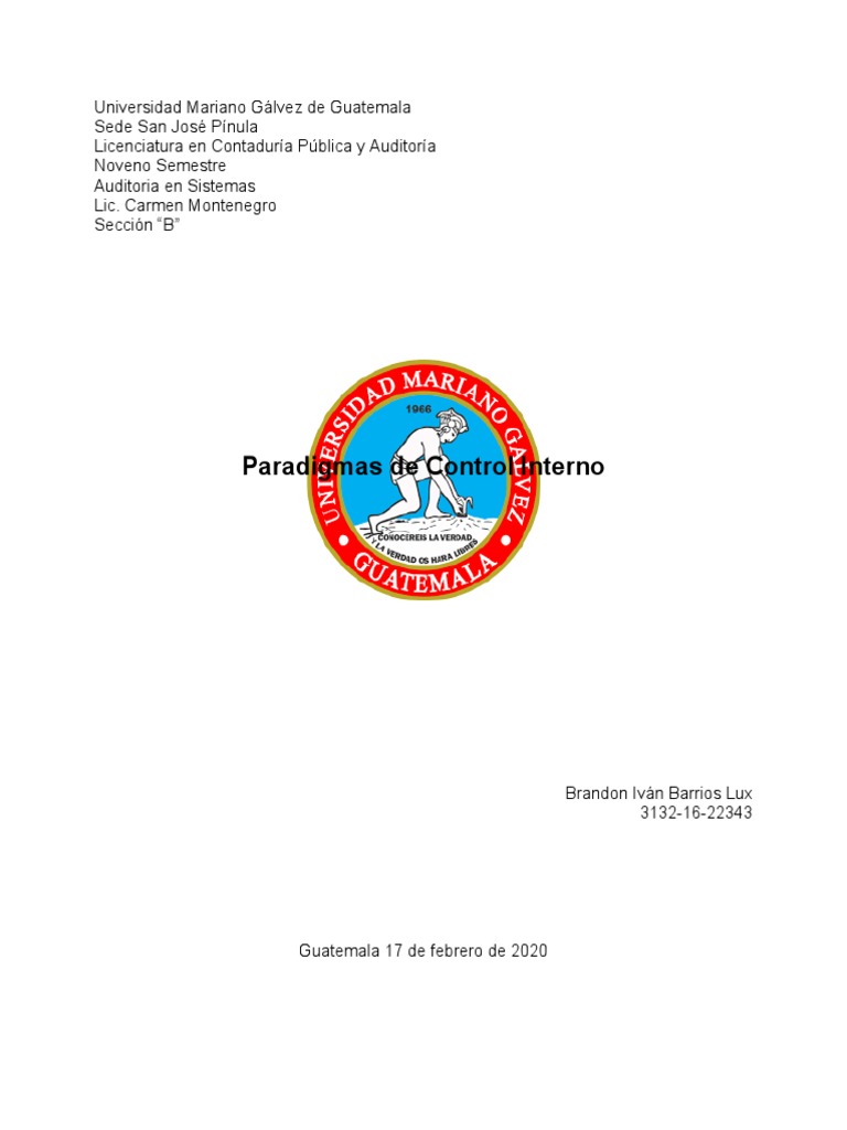 Entre algunos paradigmas de control interno podemos mencionar los siguientes: