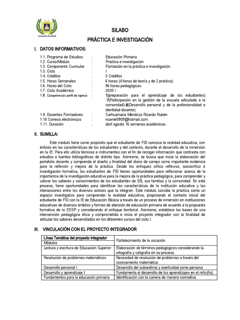 1.1. Programa de Estudios : Educación Primaria