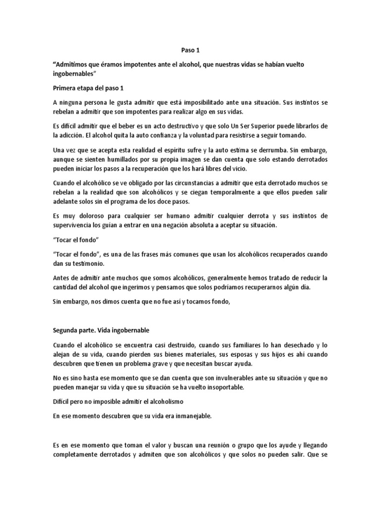 los hacían beber. Una vez trabajaron el cuarto paso comenzaron exitosamente el proceso de