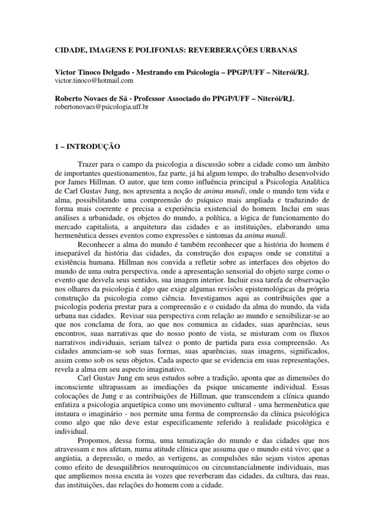 relações coletivas. Psique e cidade constituem paulatinamente uma rede complexa que
