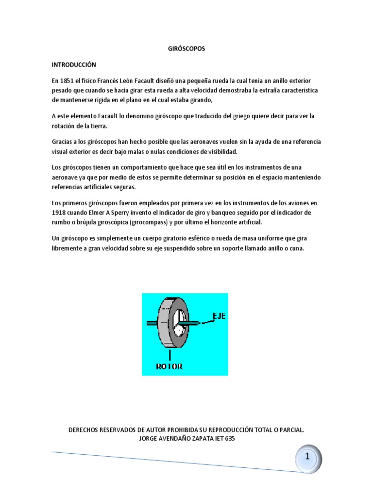 Un rotor para poder cumplir con las propiedades giroscópicas debe ser metálico y pesado en
