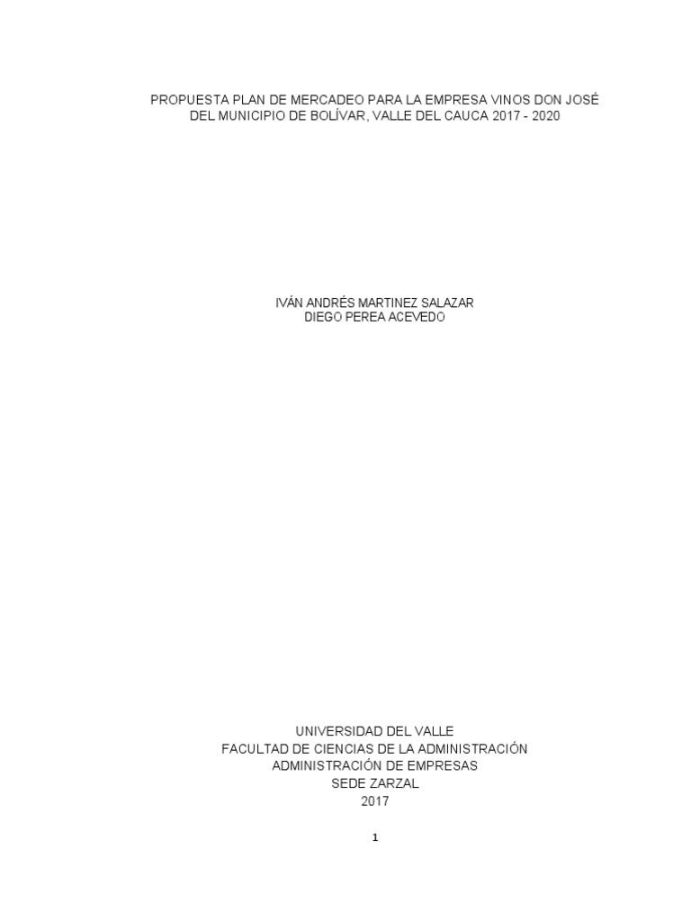 PROPUESTA PLAN DE MERCADEO PARA LA EMPRESA VINOS DON JOSÉ