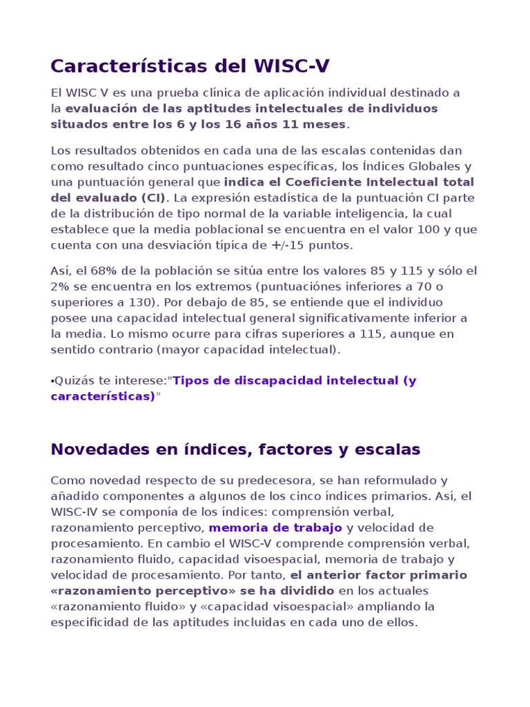 Características del WISC-V