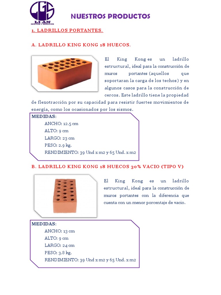 B. LADRILLO KING KONG 18 HUECOS 30% VACIO (TIPO V)