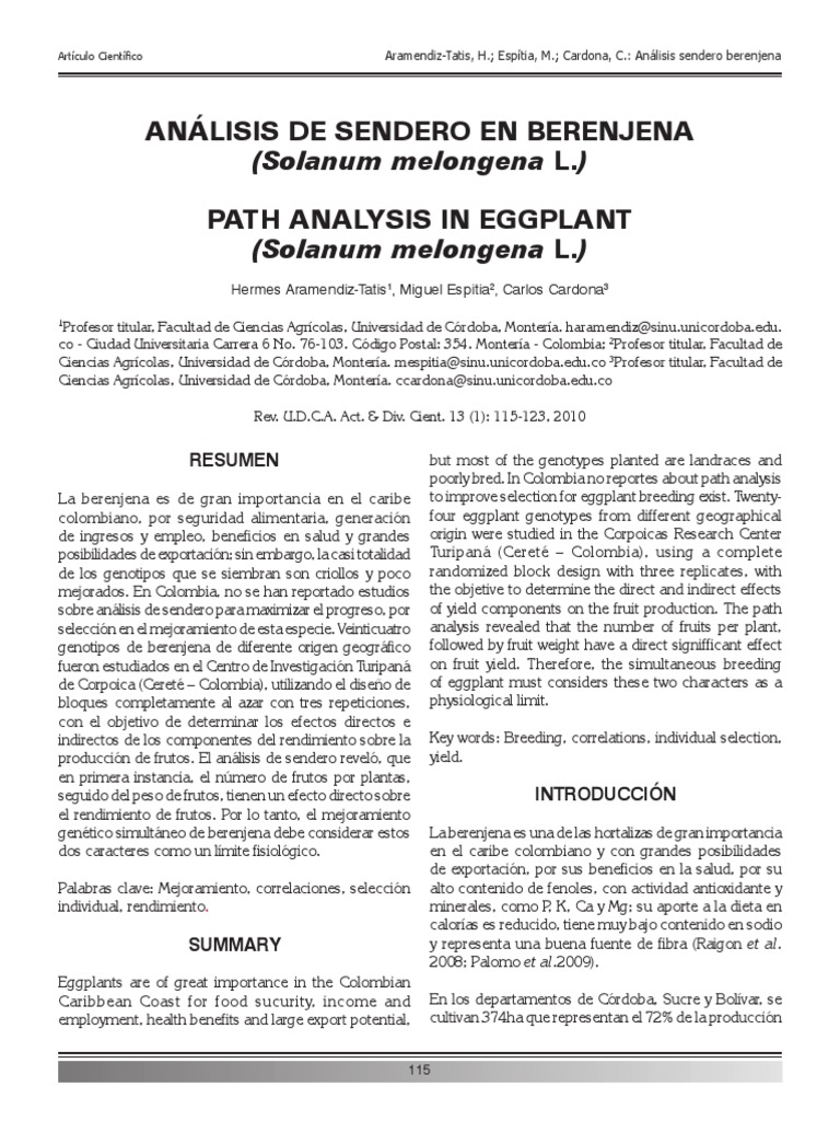 Artículo Científico Aramendiz-Tatis, H.; Espítia, M.; Cardona, C.: Análisis sendero berenjena