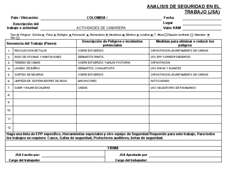 trabajo o actividad: ACTIVIDADES DE CAMARERA Valor RAM