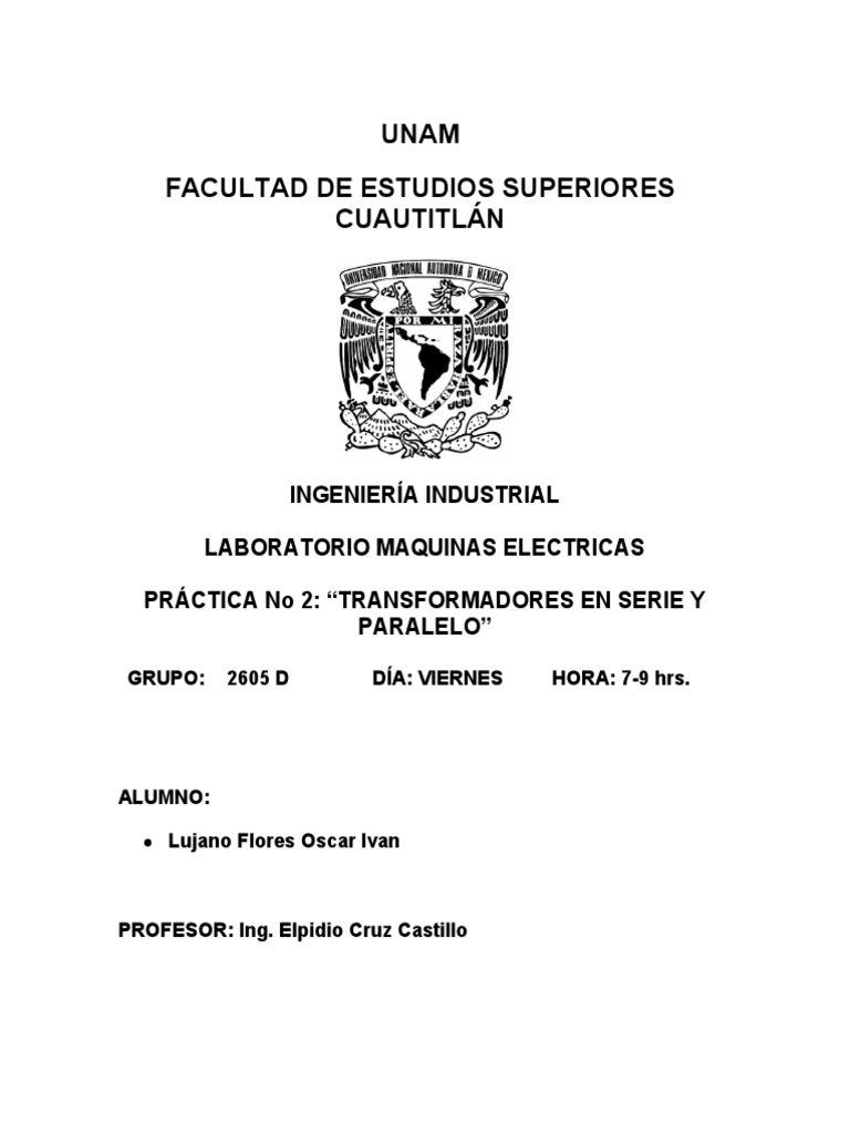 PRÁCTICA No 2: “TRANSFORMADORES EN SERIE Y