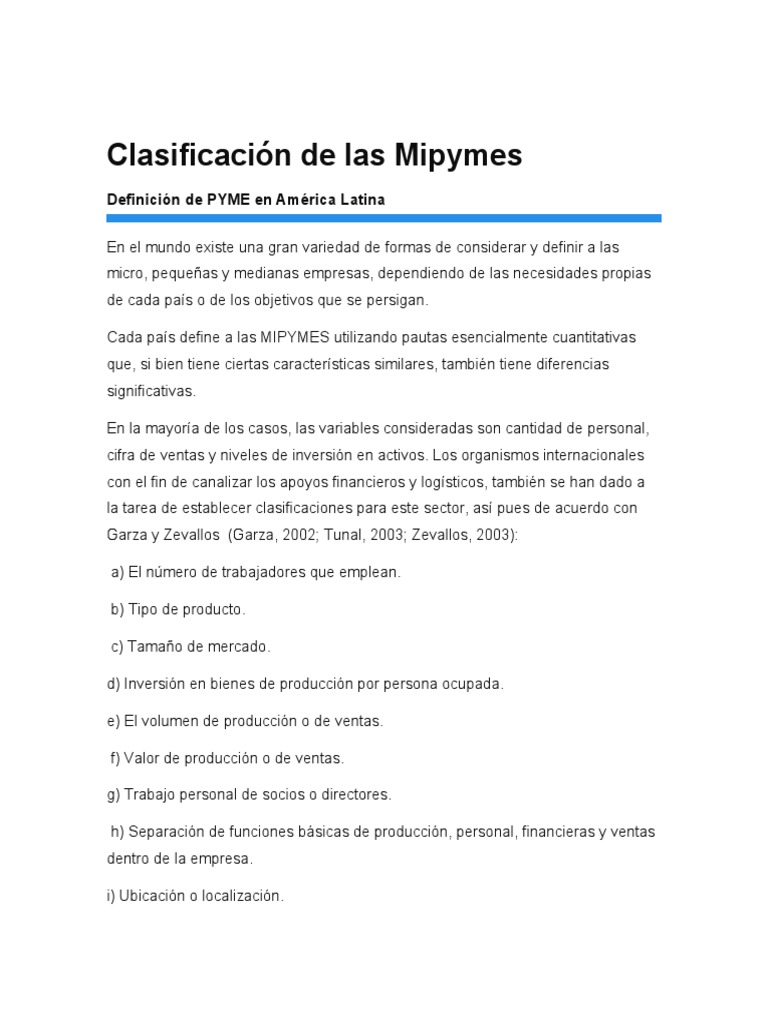 Clasificación de las Mipymes