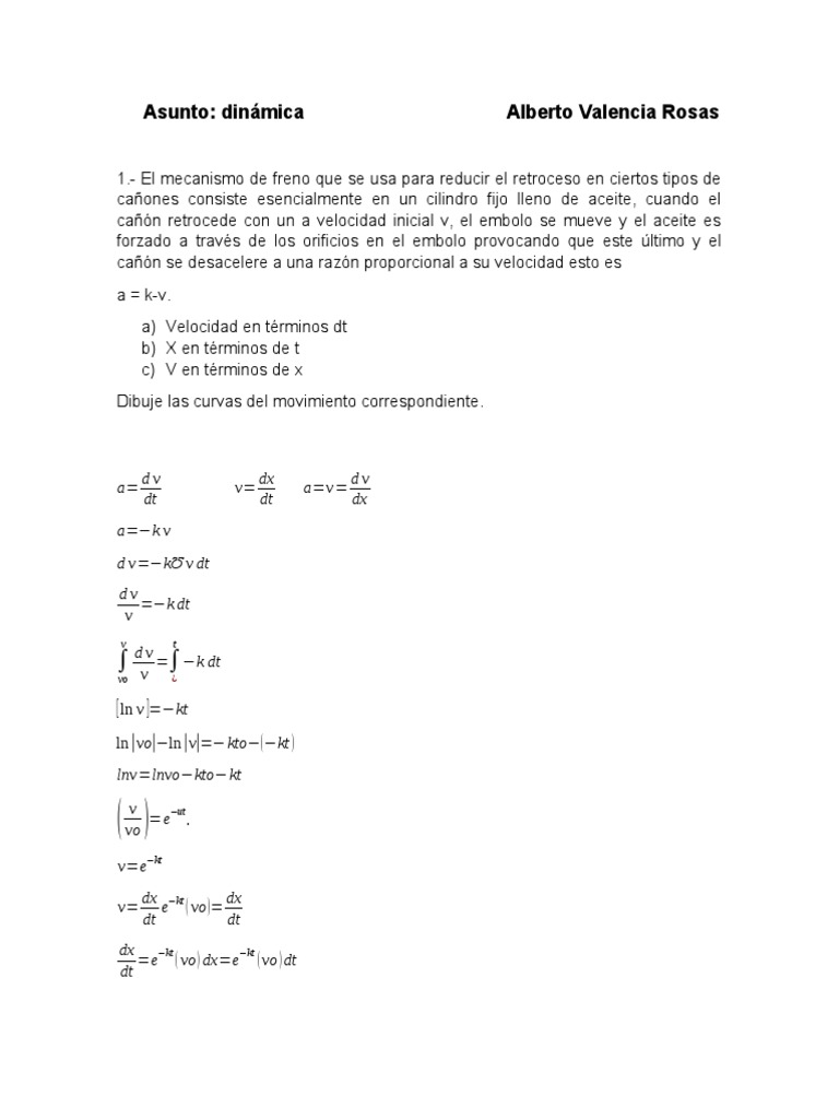 cañón se desacelere a una razón proporcional a su velocidad esto es