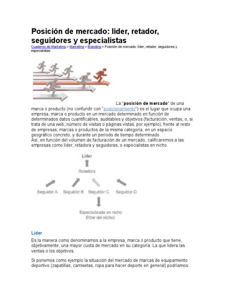Cuaderno de Marketing > Marketing > Branding > Posición de mercado: líder, retador, seguidores y