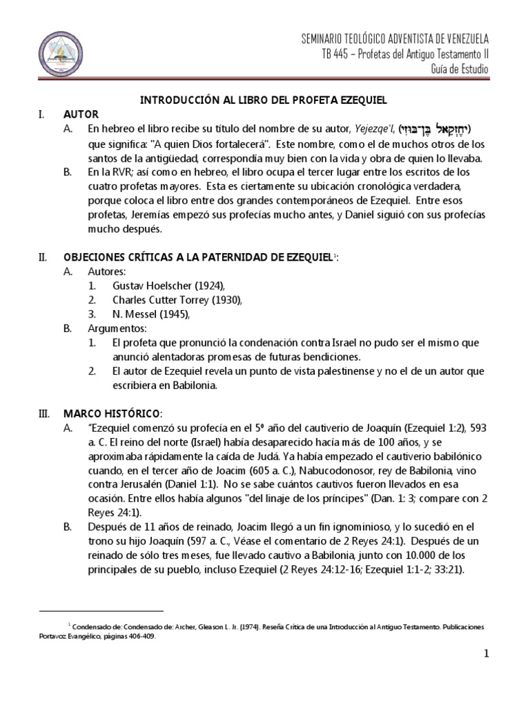 II. OBJECIONES CRÍTICAS A LA PATERNIDAD DE EZEQUIEL1: