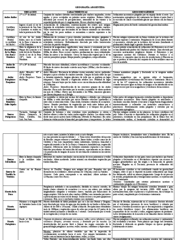 Meseta hacia el sur. volcánicos abruptos, serranías rocosas, y dominado por las mesetas. La del secundario y terciario. Vasta planicie que luego será levantada,