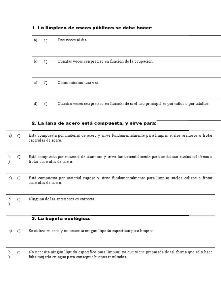 25. Funciones del personal de limpieza: