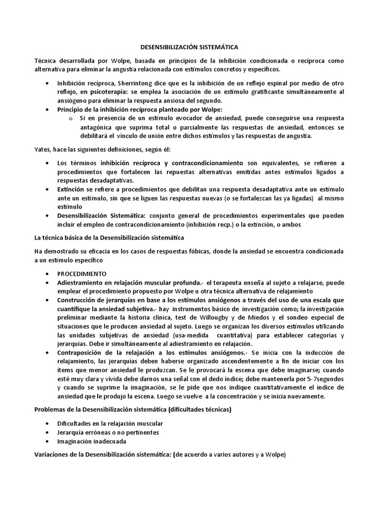Técnica desarrollada por Wolpe, basada en principios de la inhibición condicionada o recíproca como