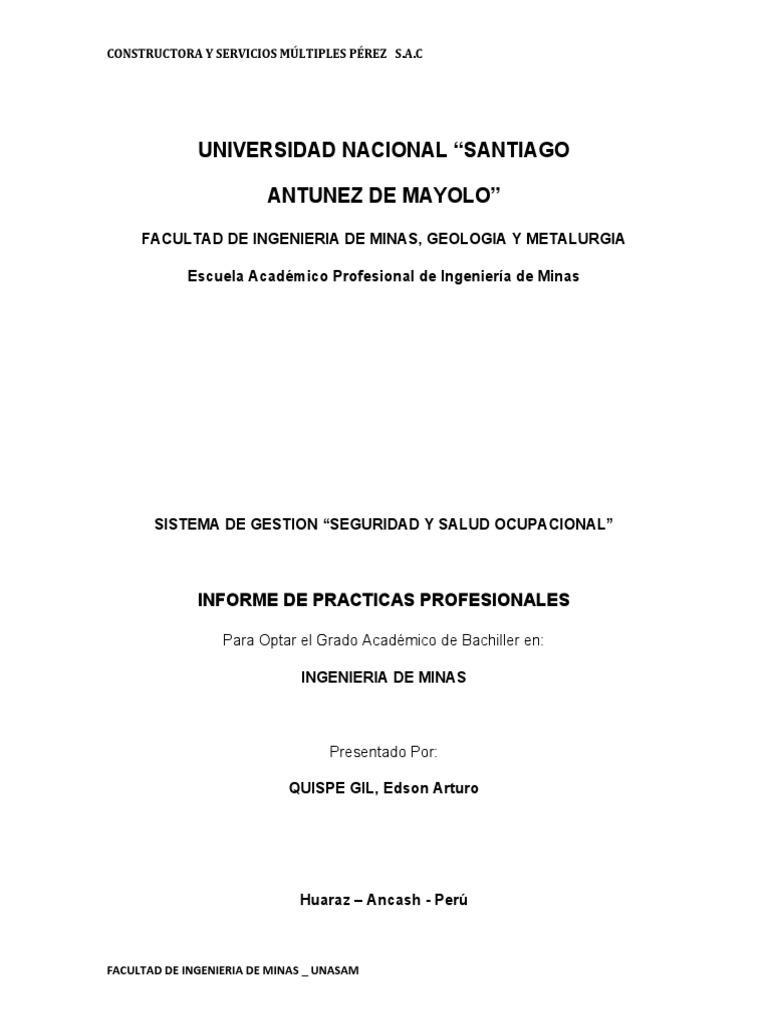 El presente Informe de Prá cticas Pre-Profesionales, realizadas en la Empresa
