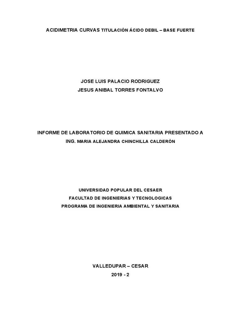 INFORME DE LABORATORIO DE QUIMICA SANITARIA PRESENTADO A