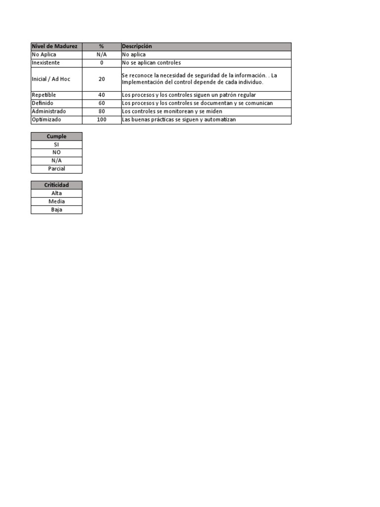 tuales relacionadas con seguridad de la información, y de cualquier requisito de seguridad. Cumple Nivel Madurez Criticidad