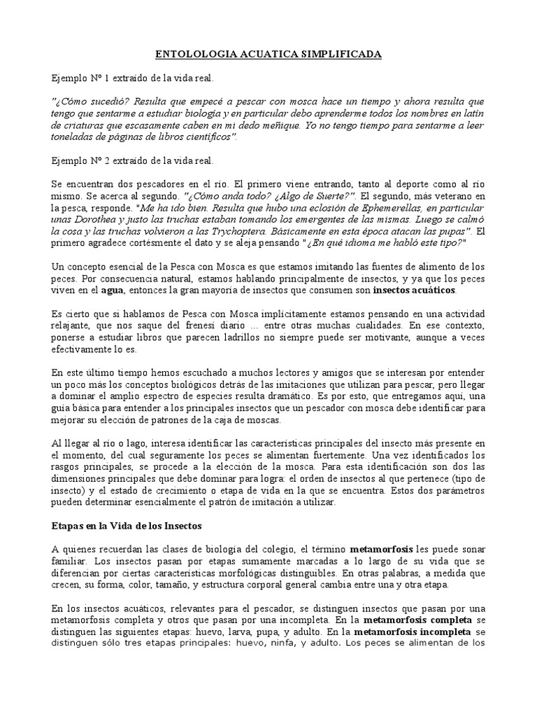 En los insectos acuáticos, relevantes para el pescador, se distinguen insectos que pasan por una