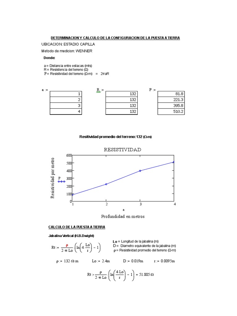 Resitividad promedio del terreno:132 (Ω-m)
